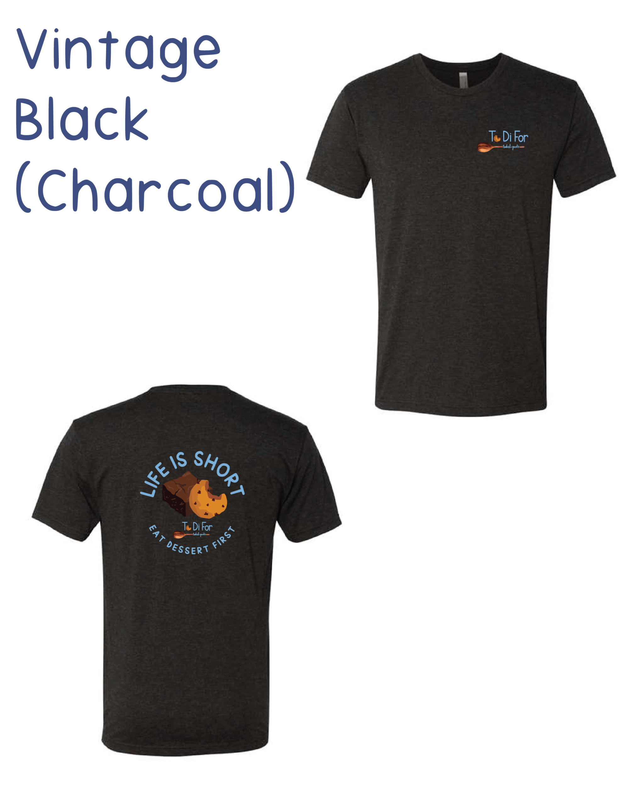 Introducing our latest To Di For t-shirt—because dessert deserves top billing! Branded with our signature To Di For logo and a motto to live by: “Life is Short, Eat Dessert First.” This shirt is soft, fun, and perfect for anyone who believes sweet moments should come early and often. Grab yours now and wear your dessert-loving heart on your sleeve!